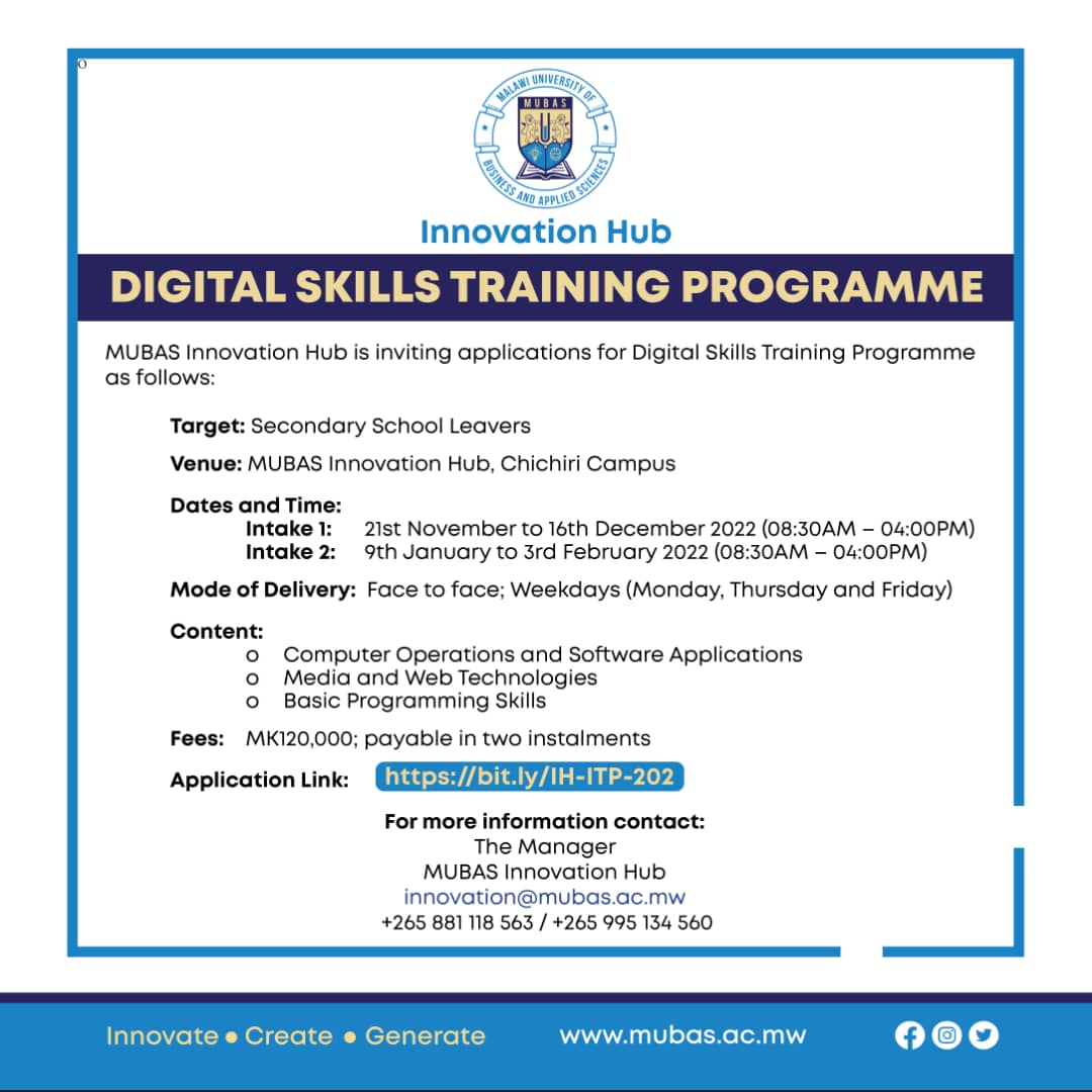 MUBAS innovation Hub is inviting applications for Digital Skills Training Programme