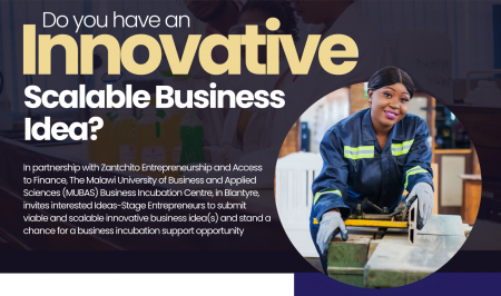 In partnership with Zantchito Entrepreneurship and Access to Finance, The Malawi University of Business and Applied Sciences (MUBAS) Business Incubation Centre, in Blantyre, invites interested Ideas-Stage Entrepreneurs to submit viable and scalable innovative business idea(s) and stand a chance for a business incubation support opportunity.