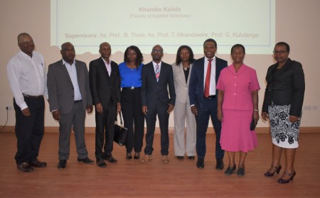He further acknowledged the support from the Dean of the Post graduates, Dr Peter Mhagama, the Dean of the Faculty of Applied Sciences Dr Ishmael Kosamu, his wife, colleagues and the organizing committee of the public defense and Viva voce.