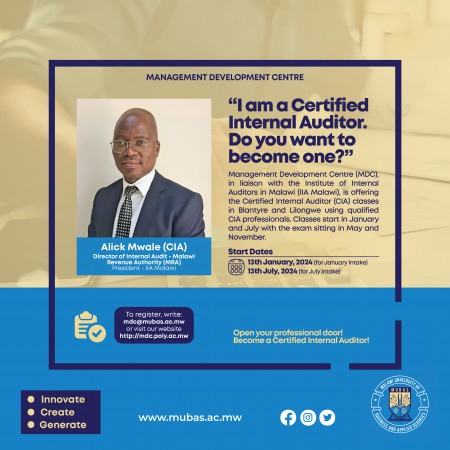 Management and Development Centre (MDC) in liaison with the Institute of Internal Auditors in Malawi (IIA Malawi), is offering the Certified Internal Auditor (CIA) classes in Blantyre and Lilongwe using qualified CIA professionals.
