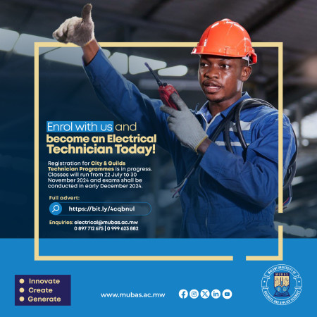 - For more information contact the City and Guilds coordinators (during working hours only): 0 897 712 675 (T. Namaona) or 0 999 623 882 (J. Msonda). Email: electrical@mubas.ac.mw