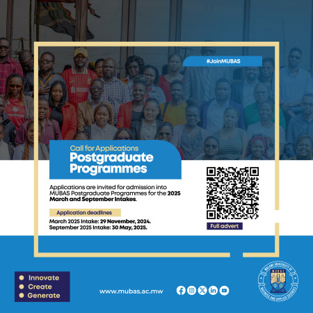 The Malawi University of Business and Applied Sciences (MUBAS) is pleased to invite eligible candidates to apply for admission into its Postgraduate Programmes.