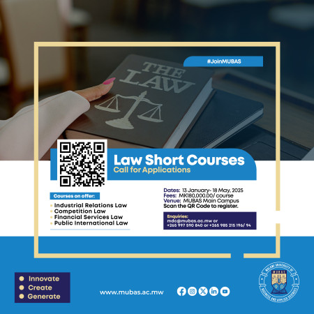 Management Development Centre (MDC) in conjunction with the Department of Economics and Law (DECL) both under the School of Business and Economic Science (SOBES) of the Malawi University of Business and Applied Sciences (MUBAS) wish to invite eligible persons to register for any of the following courses lasting for 3 months (part-time) as follows: